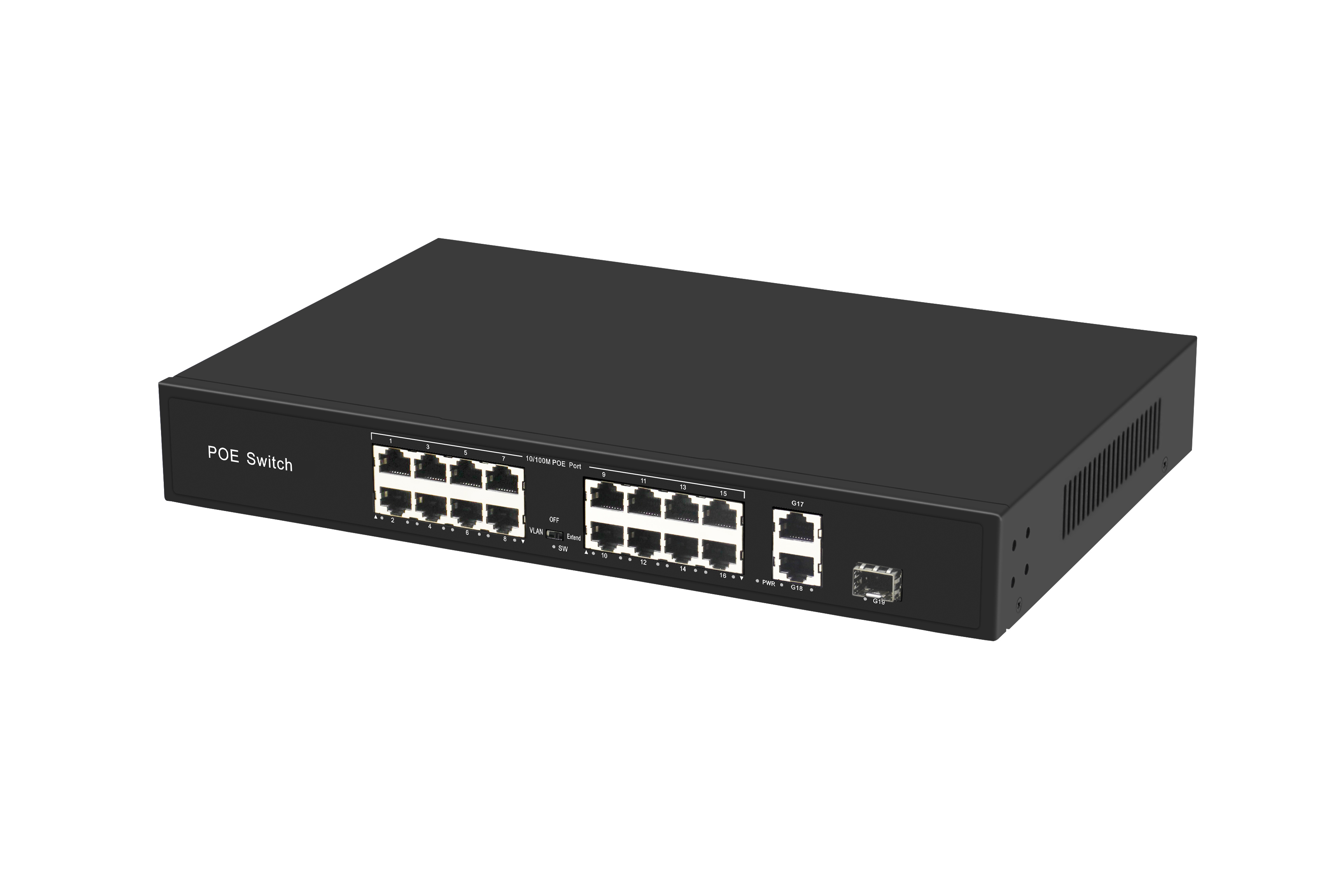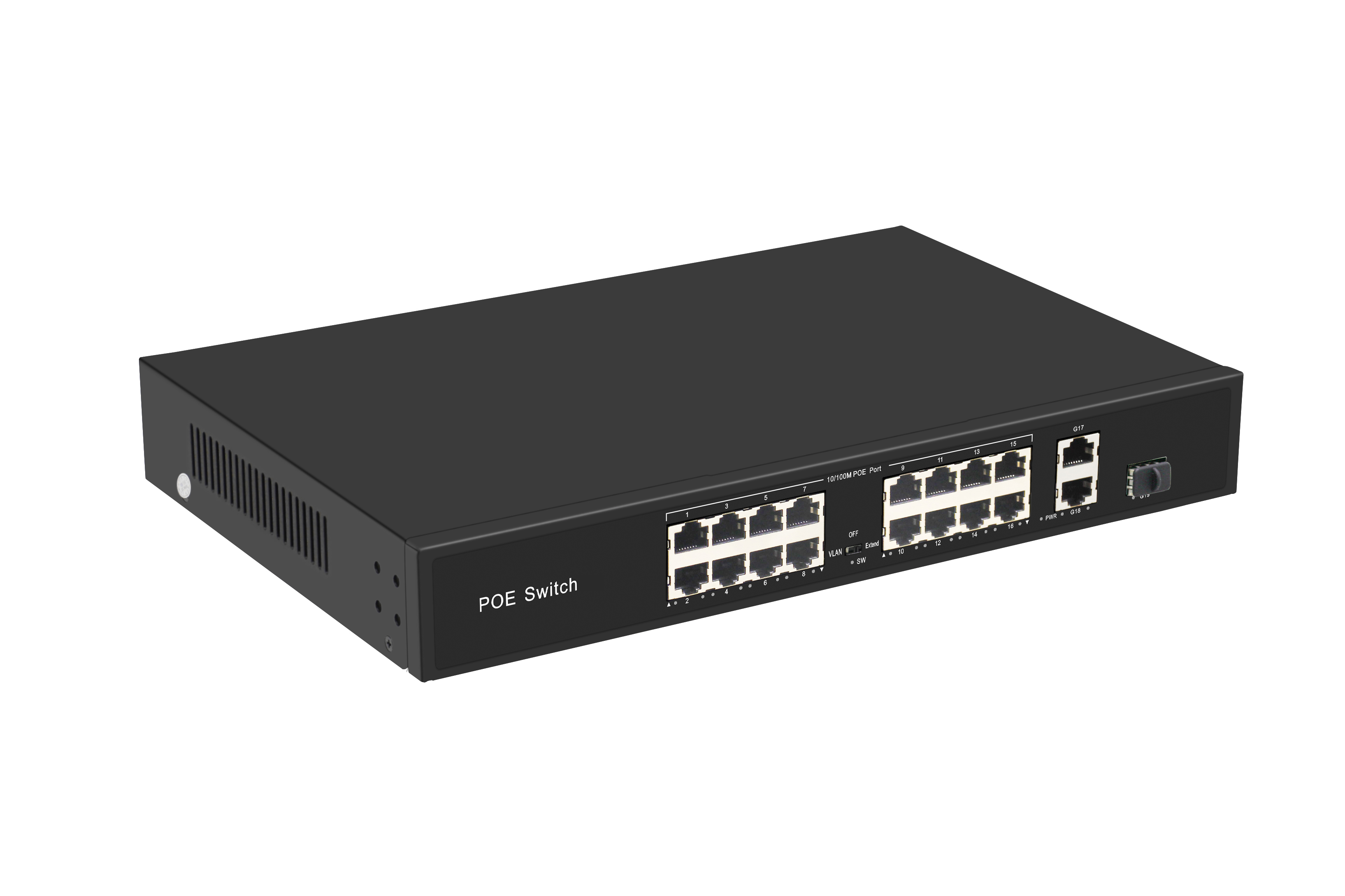 16個百兆PoE下聯(lián)網(wǎng)口+2個千兆網(wǎng)口+1個千兆SFP光口 符合IEEE 802.3af/at標(biāo)準(zhǔn),200/300W兩種整機(jī)功率可選