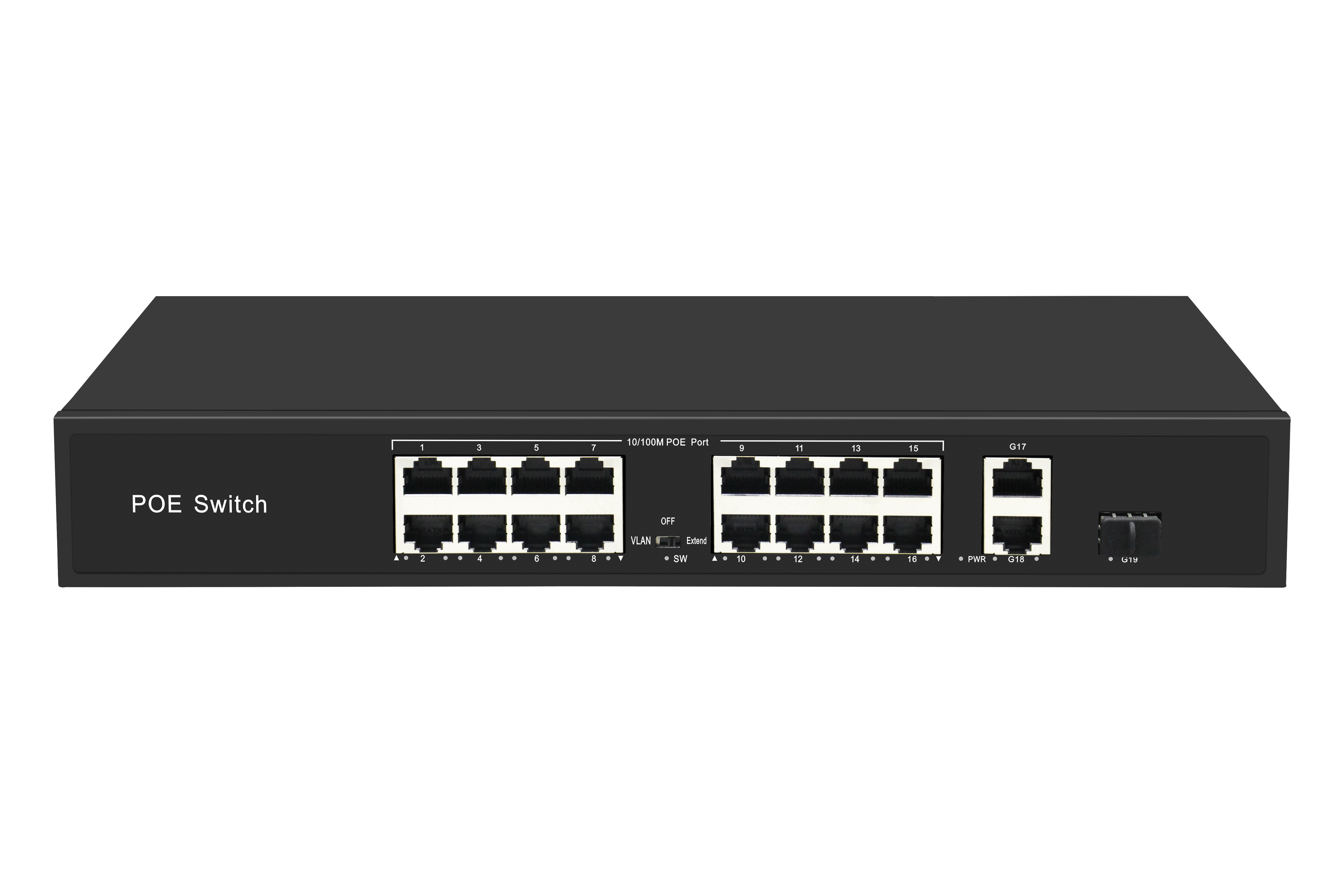 | 端口定義 | 16個百兆POE口+2個千兆網(wǎng)口+1個千兆光口 | |