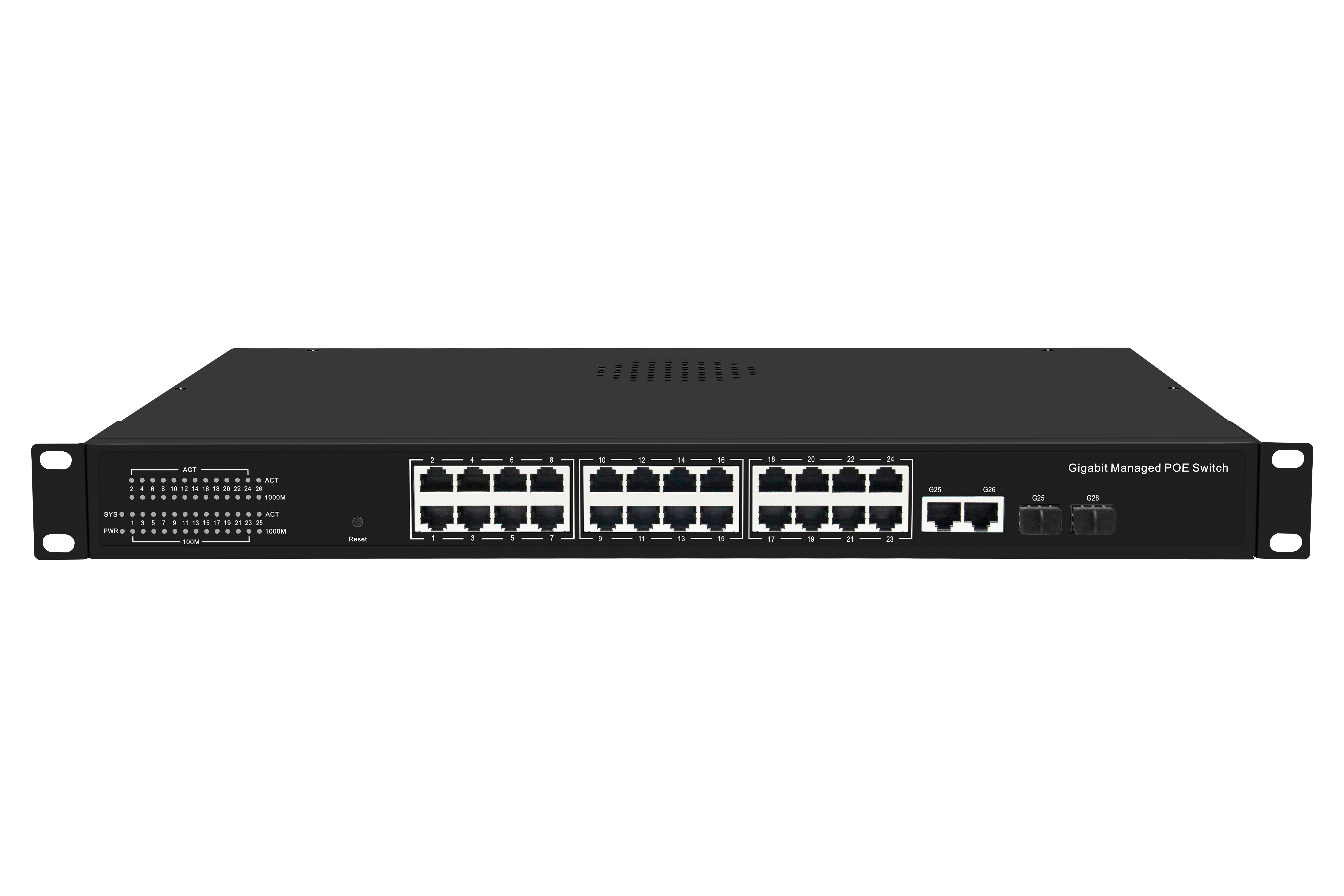 24 100Mbps POE ports+2 Gigabit uplink ports+2 Gigabit SFP optical port network management commercial grade POE switches