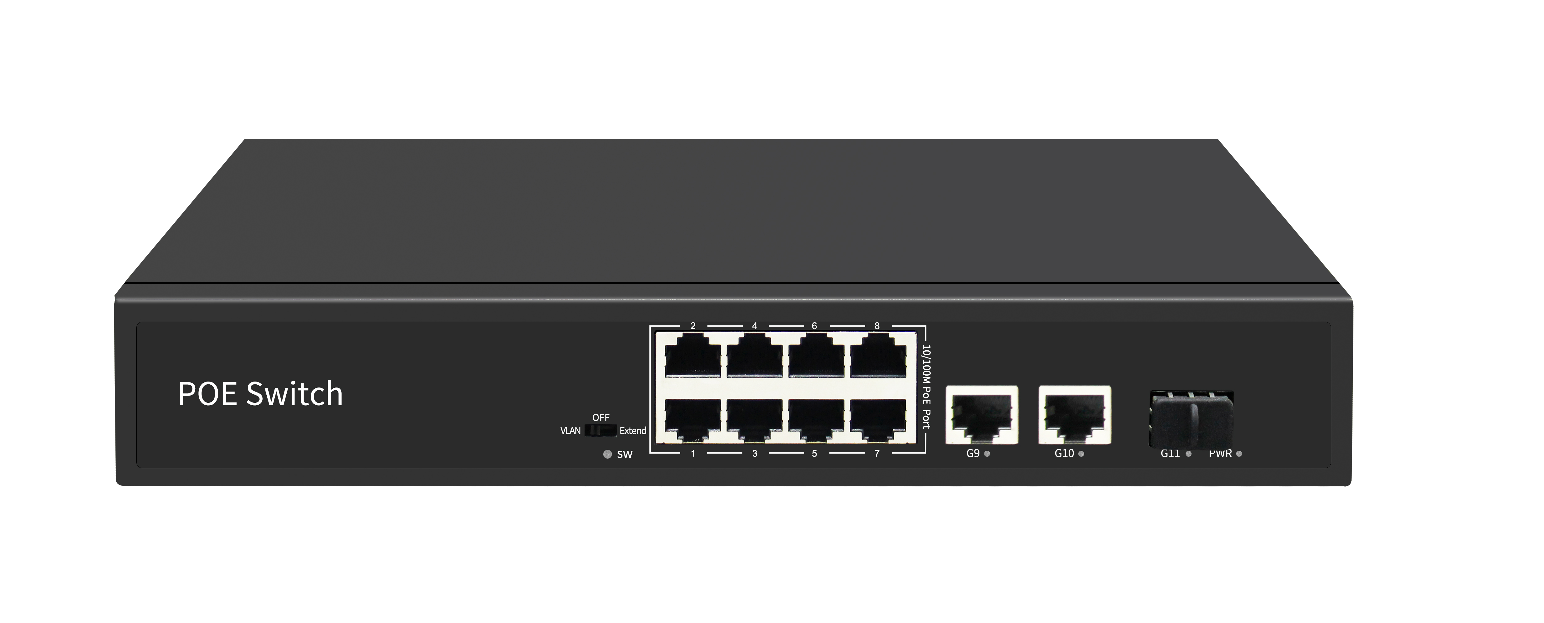 8個百兆POE電口+2個千兆上行網(wǎng)口+1個千兆光口非網(wǎng)管PoE交換機